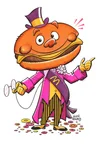 Sepia '70s McDonaldland. 2.5" x 3.5" original art cards: pen, brush, ink, gouache on textured illustration board.